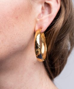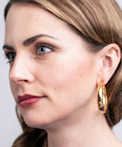 You can never go wrong with a Kenneth Jay Lane gold hoop earring! Plated in gold with a “hammered” finish, this bold yet stylish pierced hoop earring will become a closet staple.