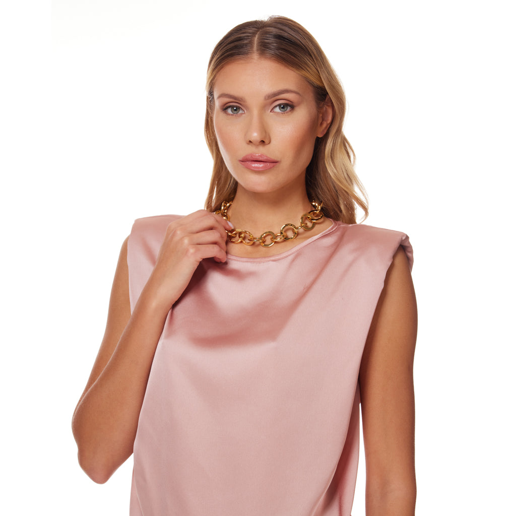 The necklace features textured circle links that exude a sense of modern beauty and sophistication. The polished gold finish adds elegance, making it suitable for various occasions.