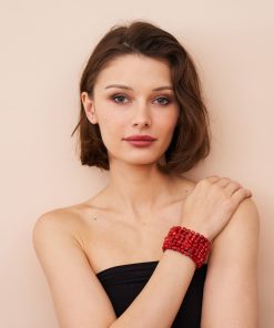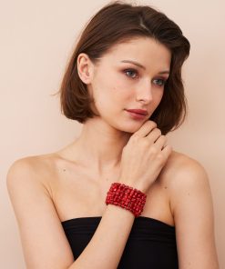 Add vibrant color to your look with this 7-row dark coral chip stretch bracelet, offering a bold, textured statement.