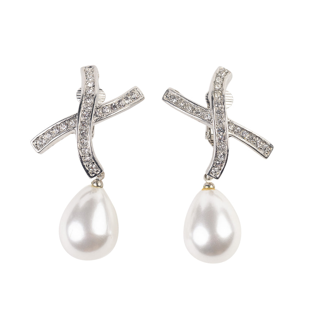 You will “wow” everyone at your next event wearing these fabulous earrings! A rhodium-plated, rhinestone “X” marks the spot and dazzles with a faux, white pearl drop.