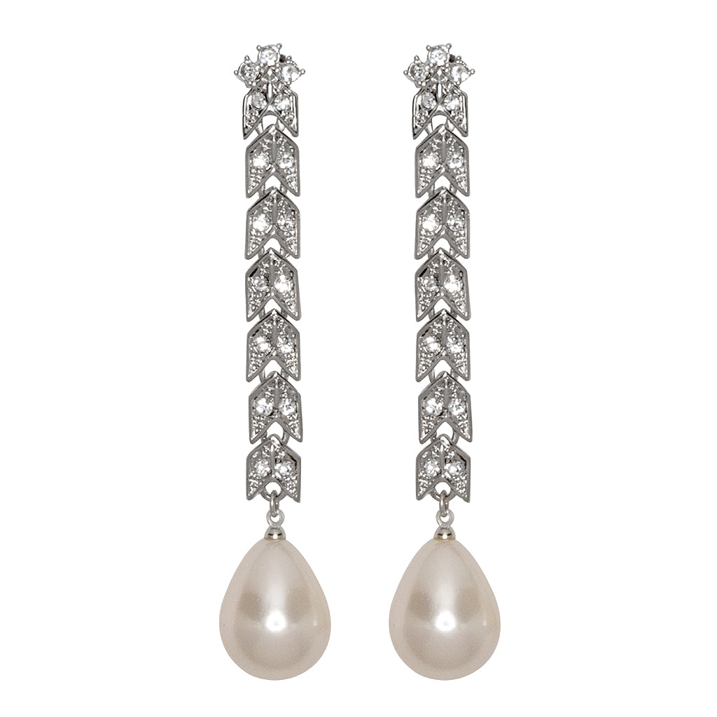 Turn heads with this stunning rhodium-plated, rhinestone-encrusted drop clip-on earring finished with a decadent glass pearl.