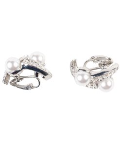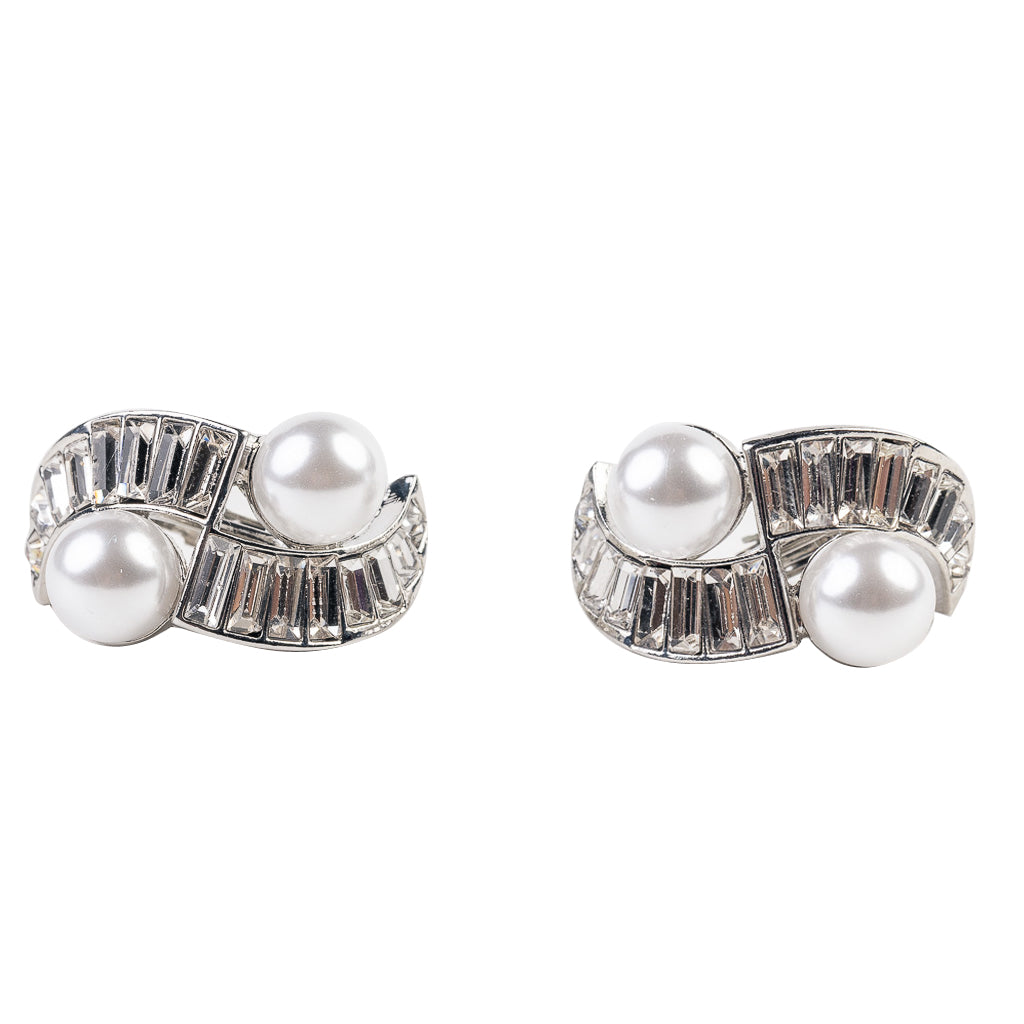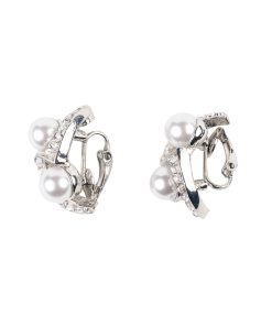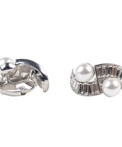 Kenneth Jay Lane Jewelry Silver And Crystal Pearl Baquette Stone Clip Earring | Light Cultura Pearl