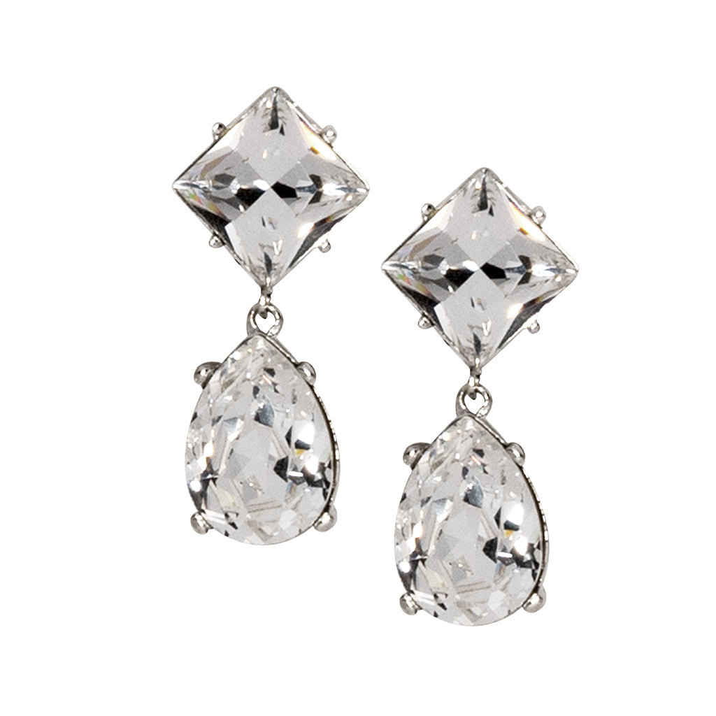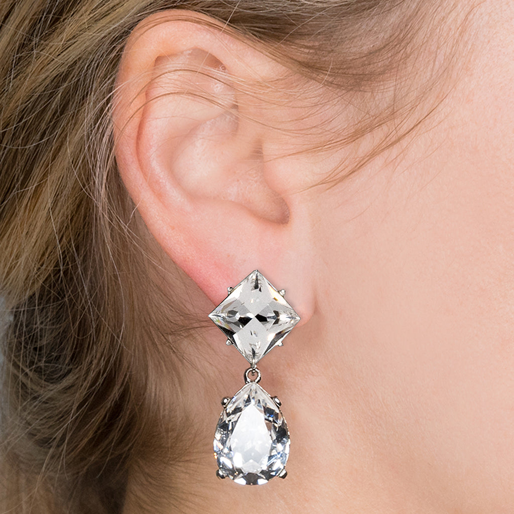 Kenneth Jay Lane Jewelry Silver And Crystal Teardrop Pierced Earrings | Silver & Crystal