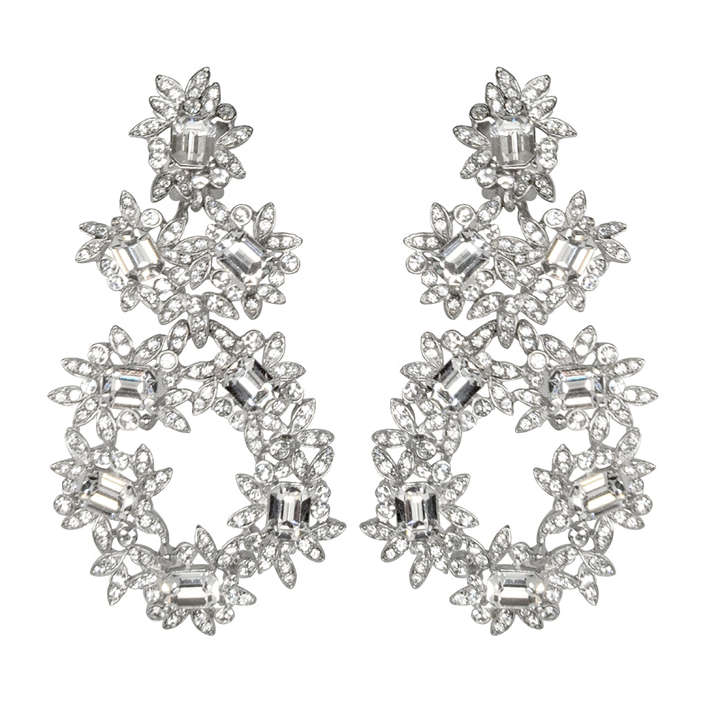 Kenneth Jay Lane Jewelry Silver & Crystal Flower Clip Earrings | Silver & Crystal