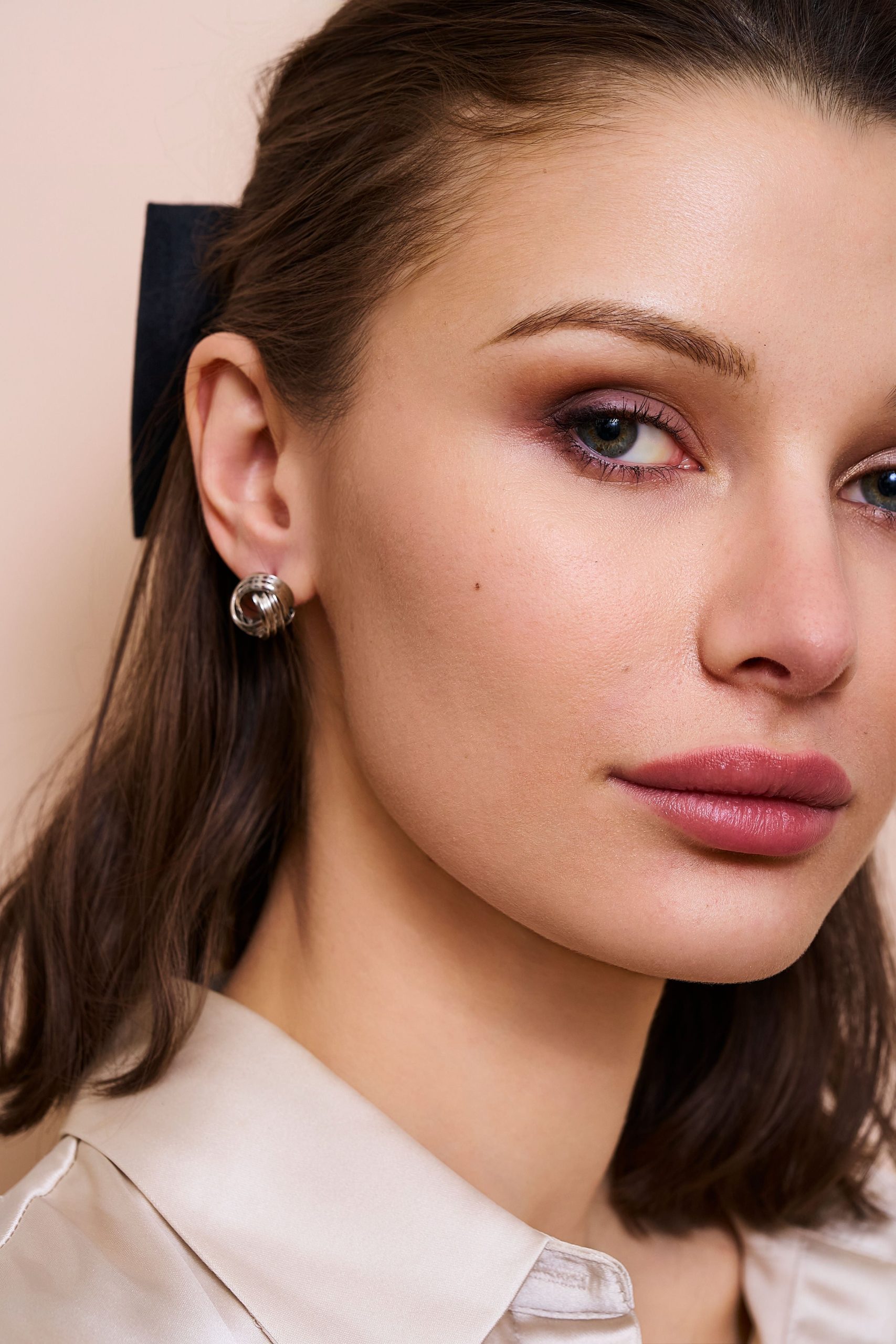These are polished silver earrings featuring a classic love knot design, offering a timeless and elegant touch.