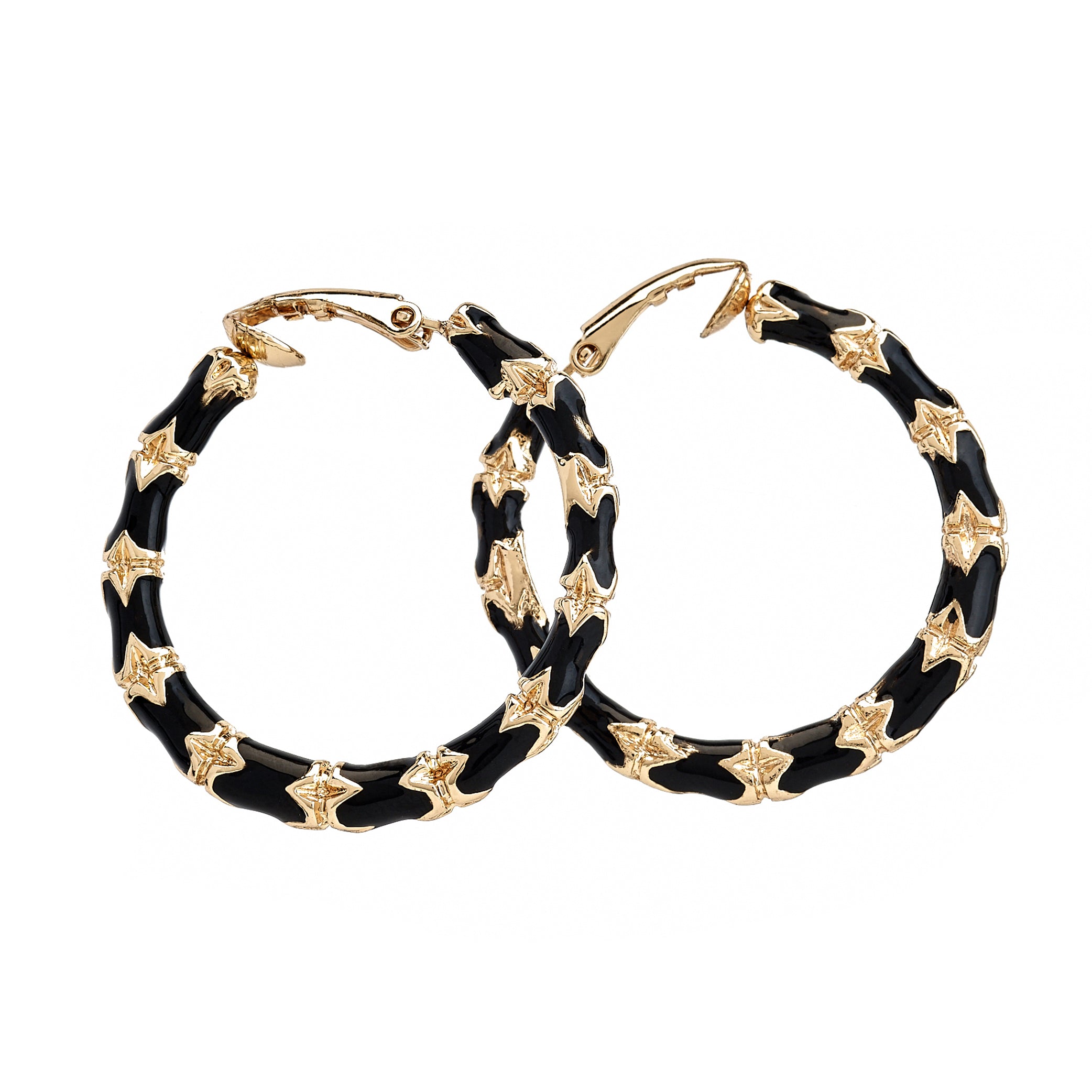 Compact and chic, these small gold and black enamel bamboo hoop clip-on earrings add a sleek, modern edge to any look.