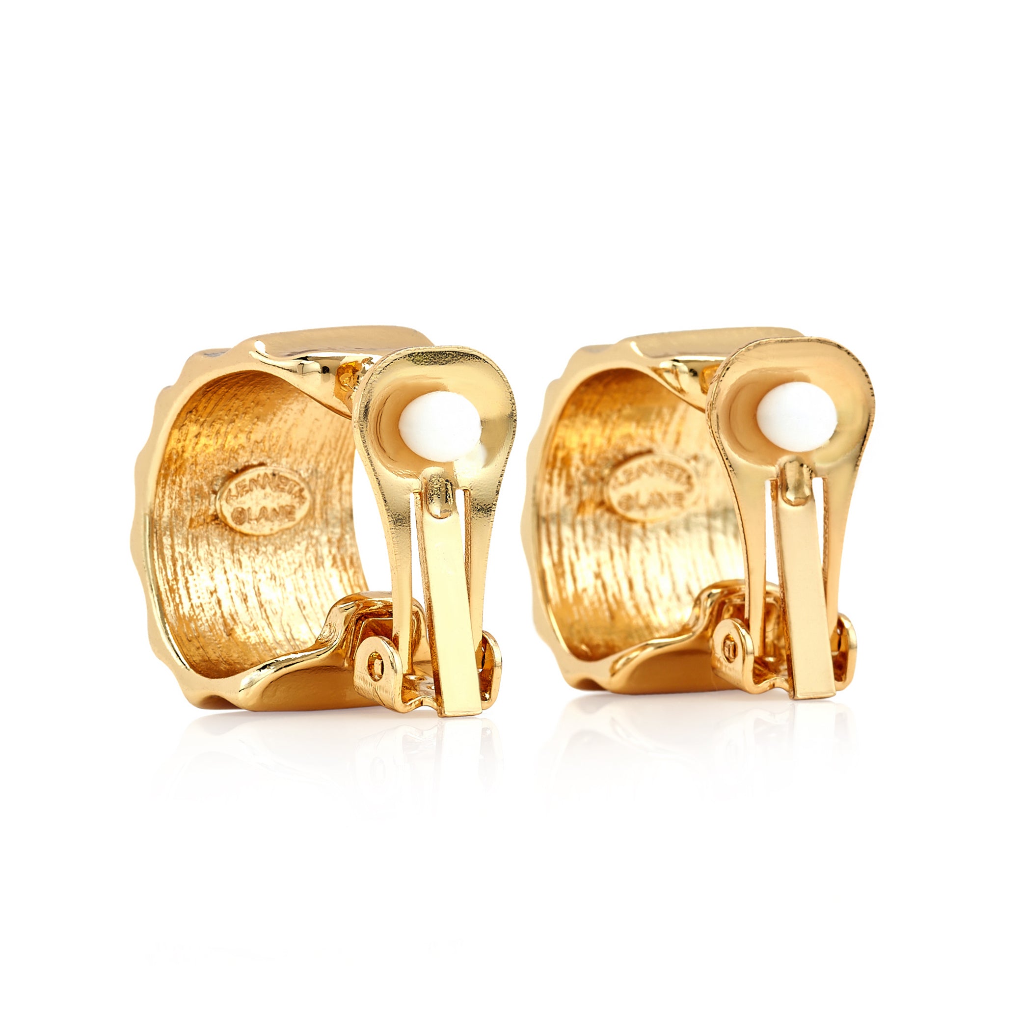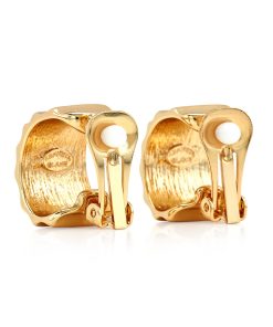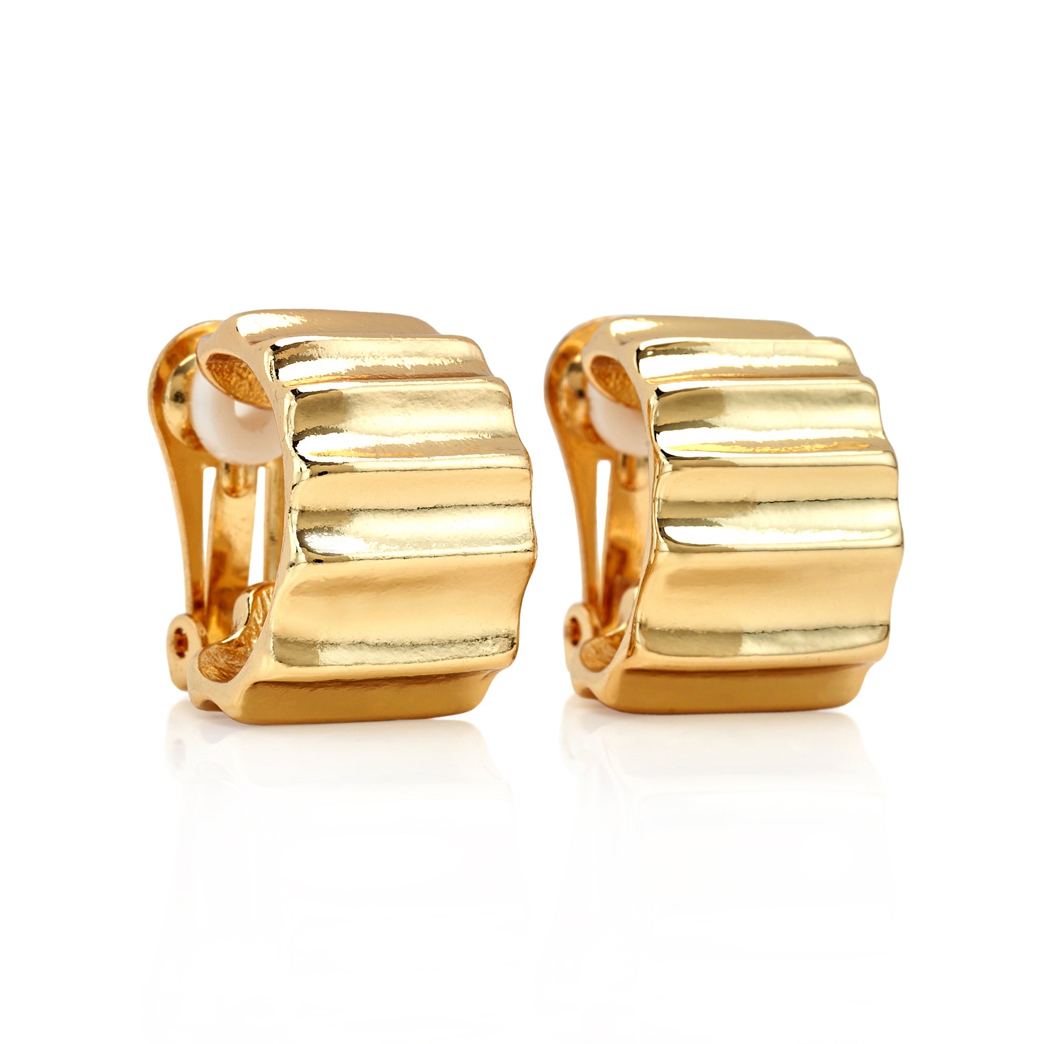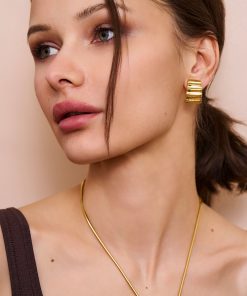These 1″ gold earrings featuring a tapered, ribbed C-shape hoop design, offers a sleek and modern look.