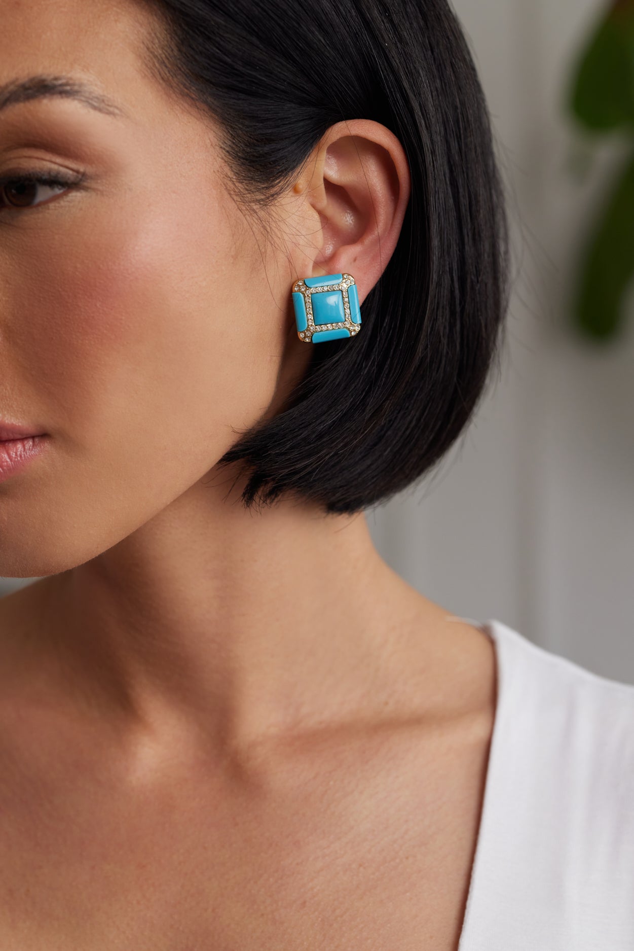 Kenneth Jay Lane Jewelry Turquoise Square Clip Earrings | Gold & Turquoise