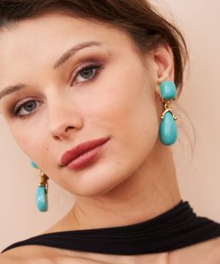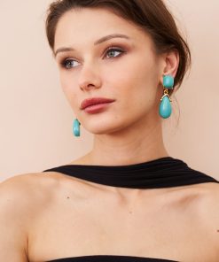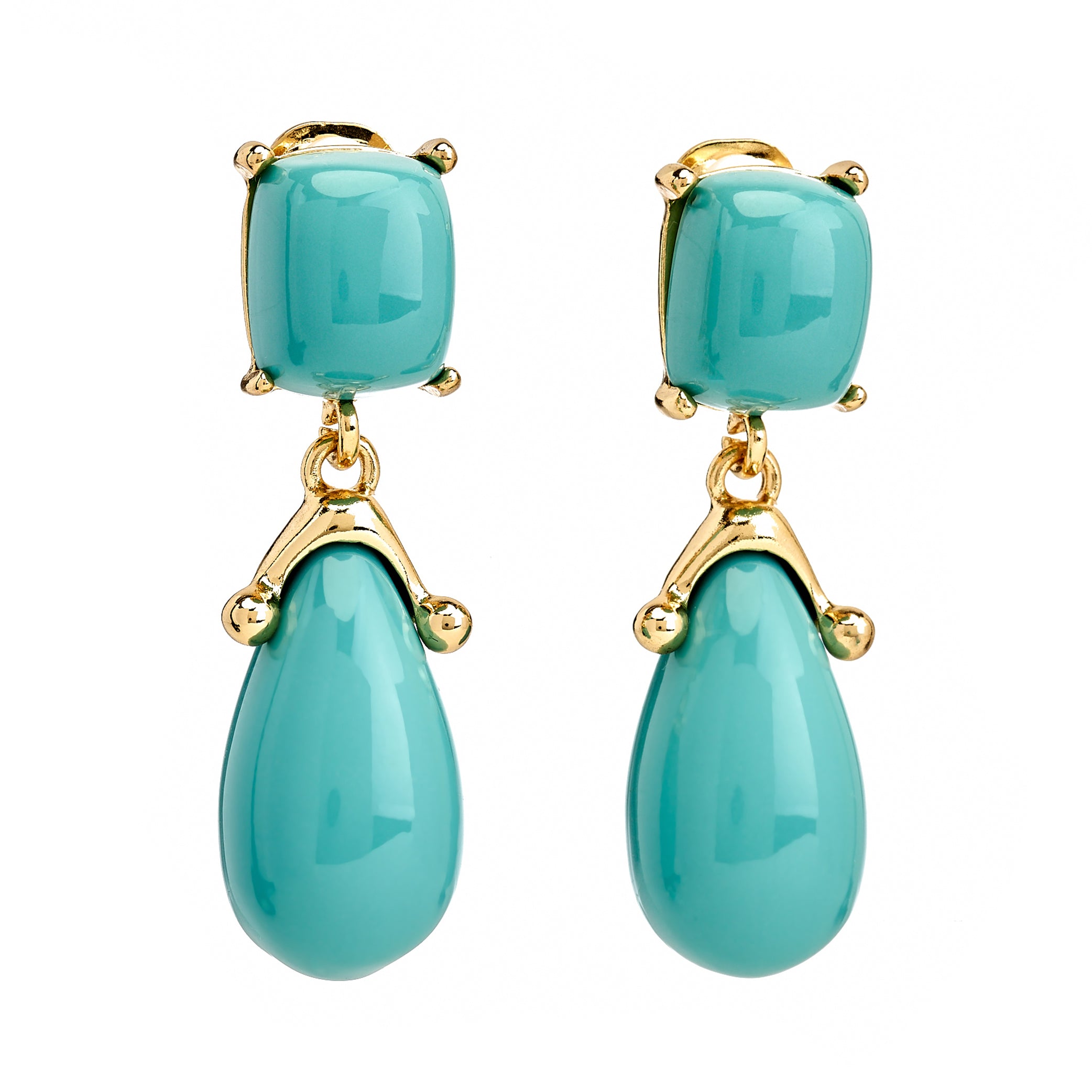 Kenneth Jay Lane Jewelry Turquoise Square Top Drop Clip Earrings | Turquoise