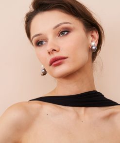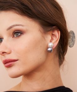 Sophisticated and stylish, these clip-on earrings feature a silver setting with a light Cultura pearl on top and a grey pearl on the bottom for an elegant two-tone look.