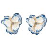 Round white cabochons button clip earrings with a rhodium and rhinestone