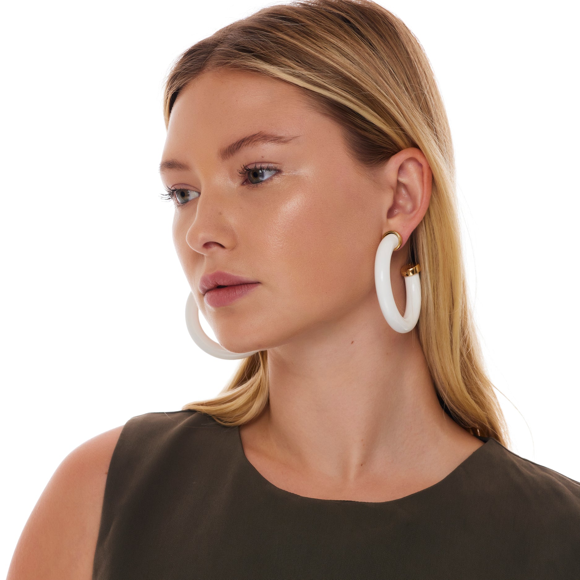 White resin hoop pierced earrings polished with gold ends pairs perfectly with any outfit!