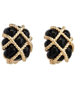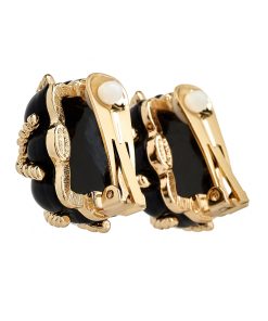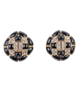 Kenneth Jay Lane Jewelry Rhinestone And Black Button Clip Earring | Gold & Black & Rhinestone