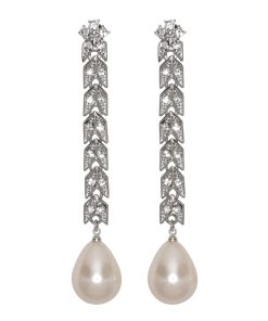 Kenneth Jay Lane Jewelry Silver And Crystal Pearl Baquette Stone Clip Earring | Light Cultura Pearl