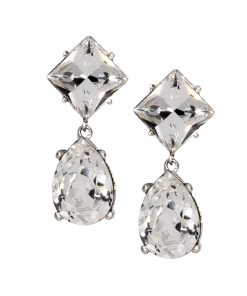 Kenneth Jay Lane Jewelry Silver And Crystal Teardrop Pierced Earrings | Silver & Crystal