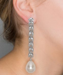 Kenneth Jay Lane Jewelry Silver And Crystal Pearl Baquette Stone Clip Earring | Light Cultura Pearl