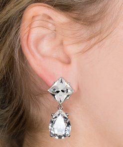 Kenneth Jay Lane Jewelry Silver And Crystal Teardrop Pierced Earrings | Silver & Crystal
