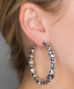 Kenneth Jay Lane Jewelry Silver Clip Earring With Rhinestone Center | Silver & Crystal & Clear