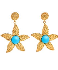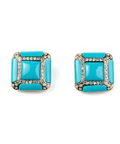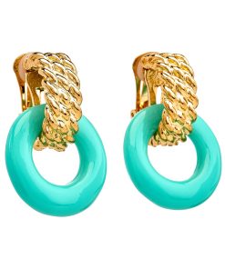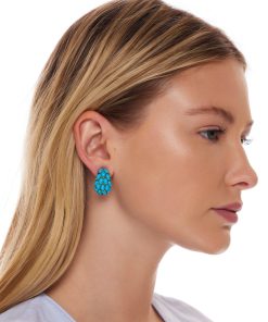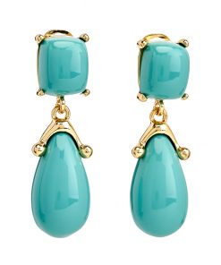Kenneth Jay Lane Jewelry Turquoise Resin Gold Wire Wrapped Clip Earrings | Turquoise & Gold