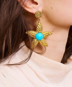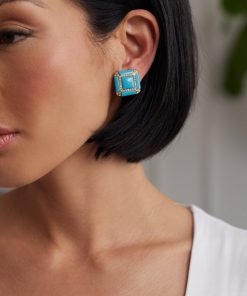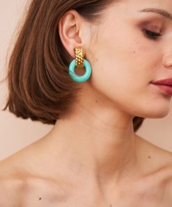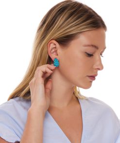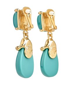 Kenneth Jay Lane Jewelry Turquoise Resin Gold Wire Wrapped Clip Earrings | Turquoise & Gold